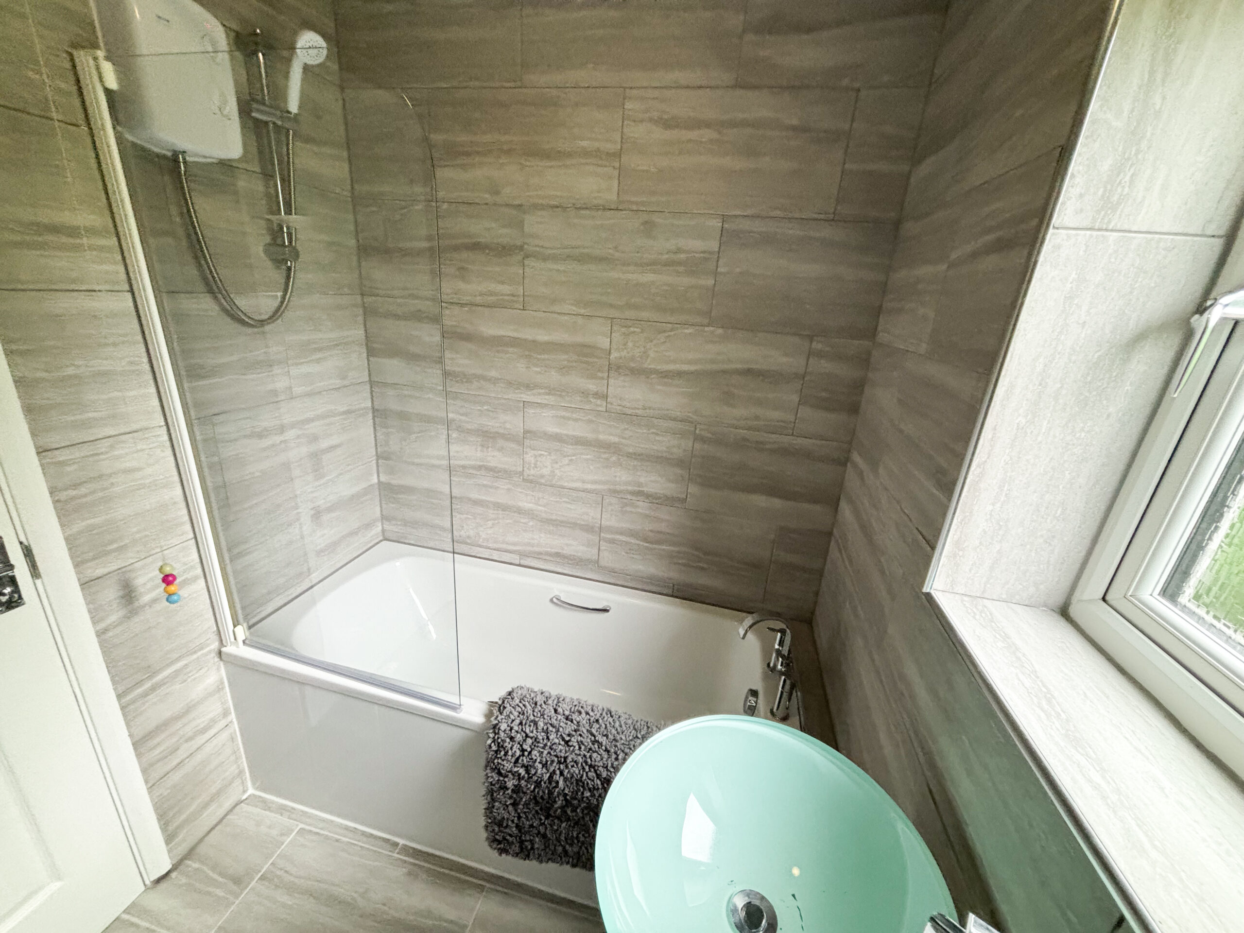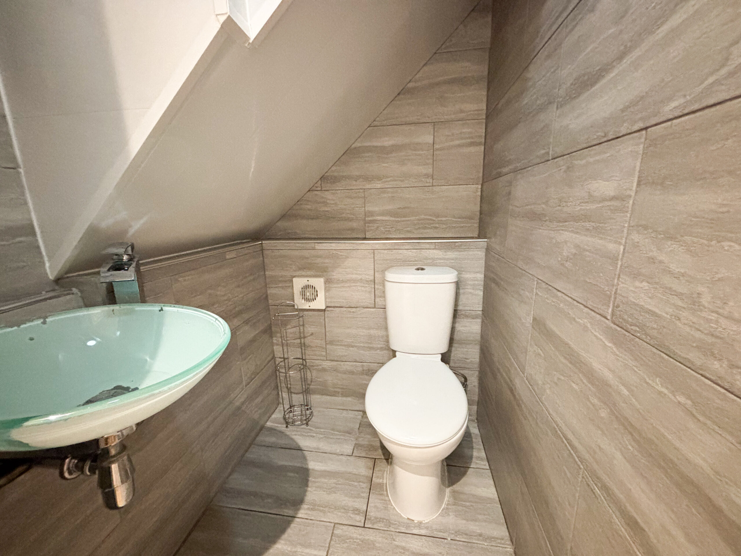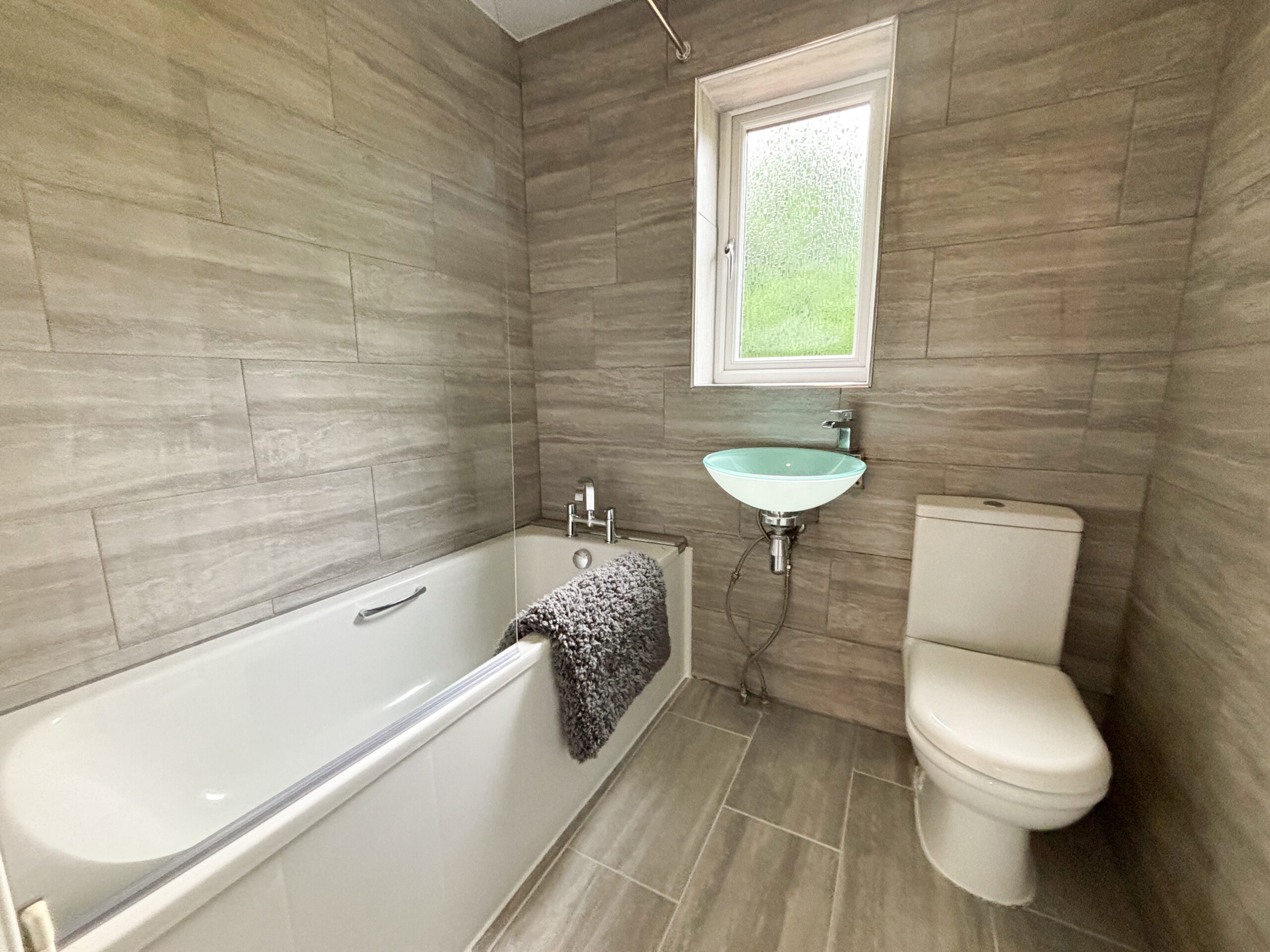 On the ground floor there is a newly refurbished toilet with a beautiful glass basis and waterfall taps, the room is tiled from floor to ceiling. There is also a good sized newly refurbished bathroom with toilet on the first floor which comes fully tiled, with a shower and a glass shower screen, glass hand basin, waterfall taps and window to the back of the property.