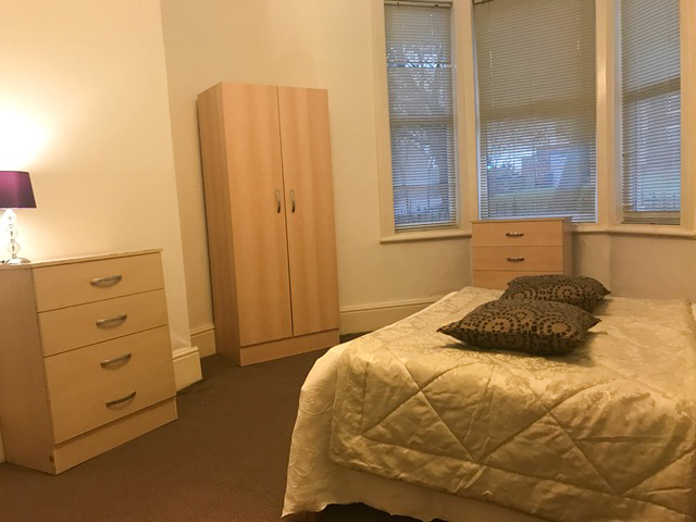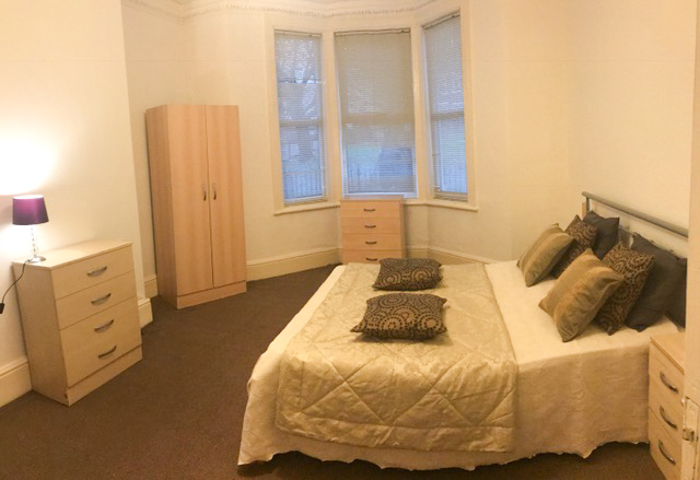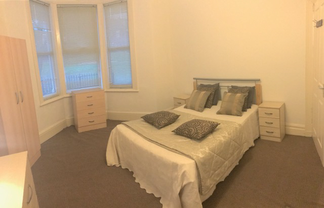 A very large, light and airy room situated on the ground floor with a large bay window looking out over the front of the property.  It contains 3  wardrobes, 2 chest of drawers, 2 bed side tables and a double bed.  The room also has a tv aerial point and is decorated in neutral colours with cream venetian blinds.
