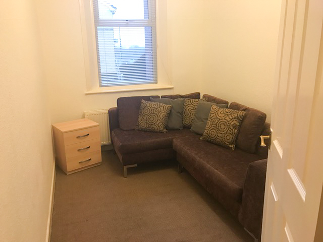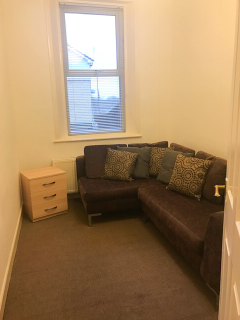 Is a single bedroom, with a window to the back aspect of the property.  It is situated on the ground floor at the rear of the property.  It contains a single bed, bedside table. desk and chair and is decorated in neutral colours with cream venetian blinds.