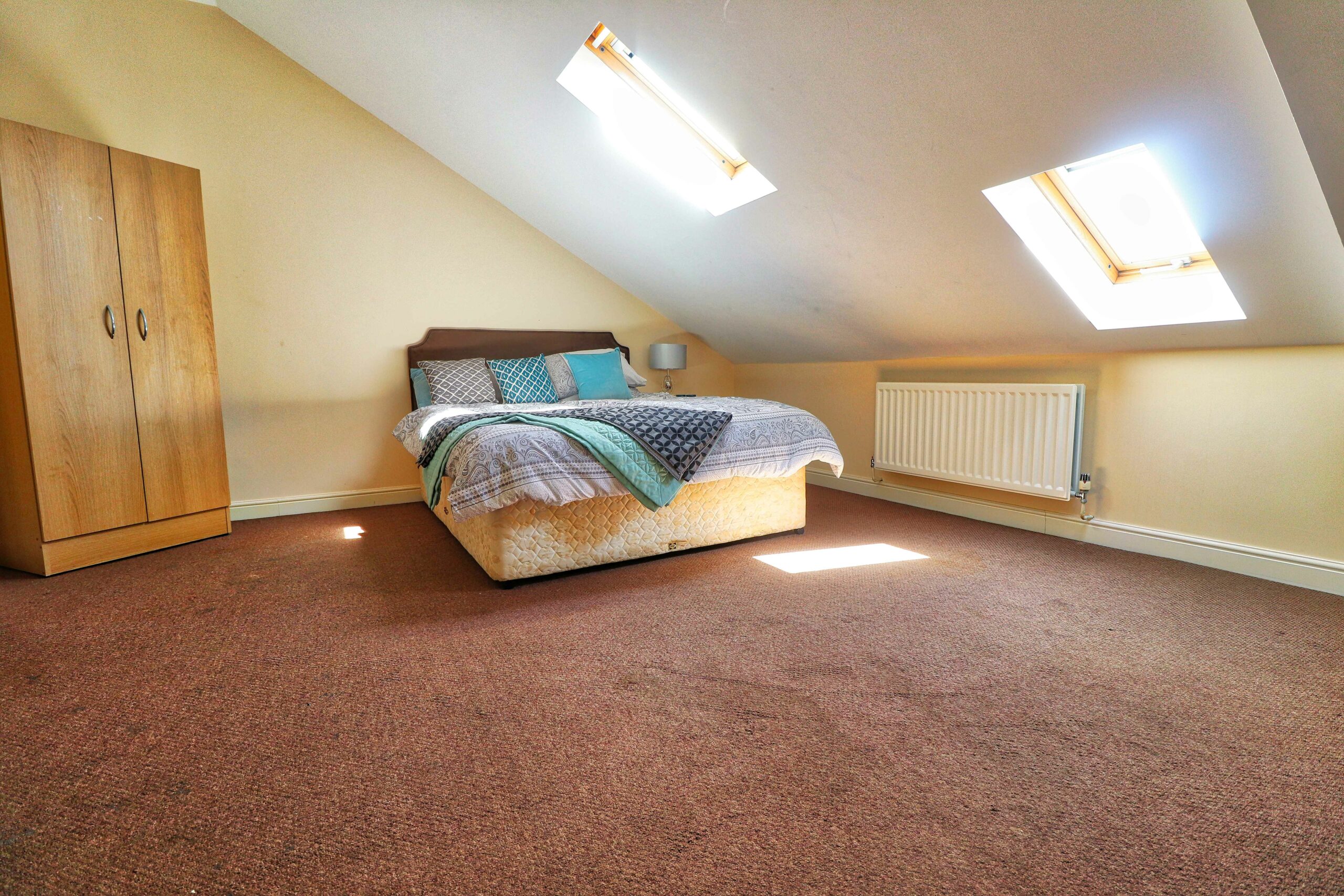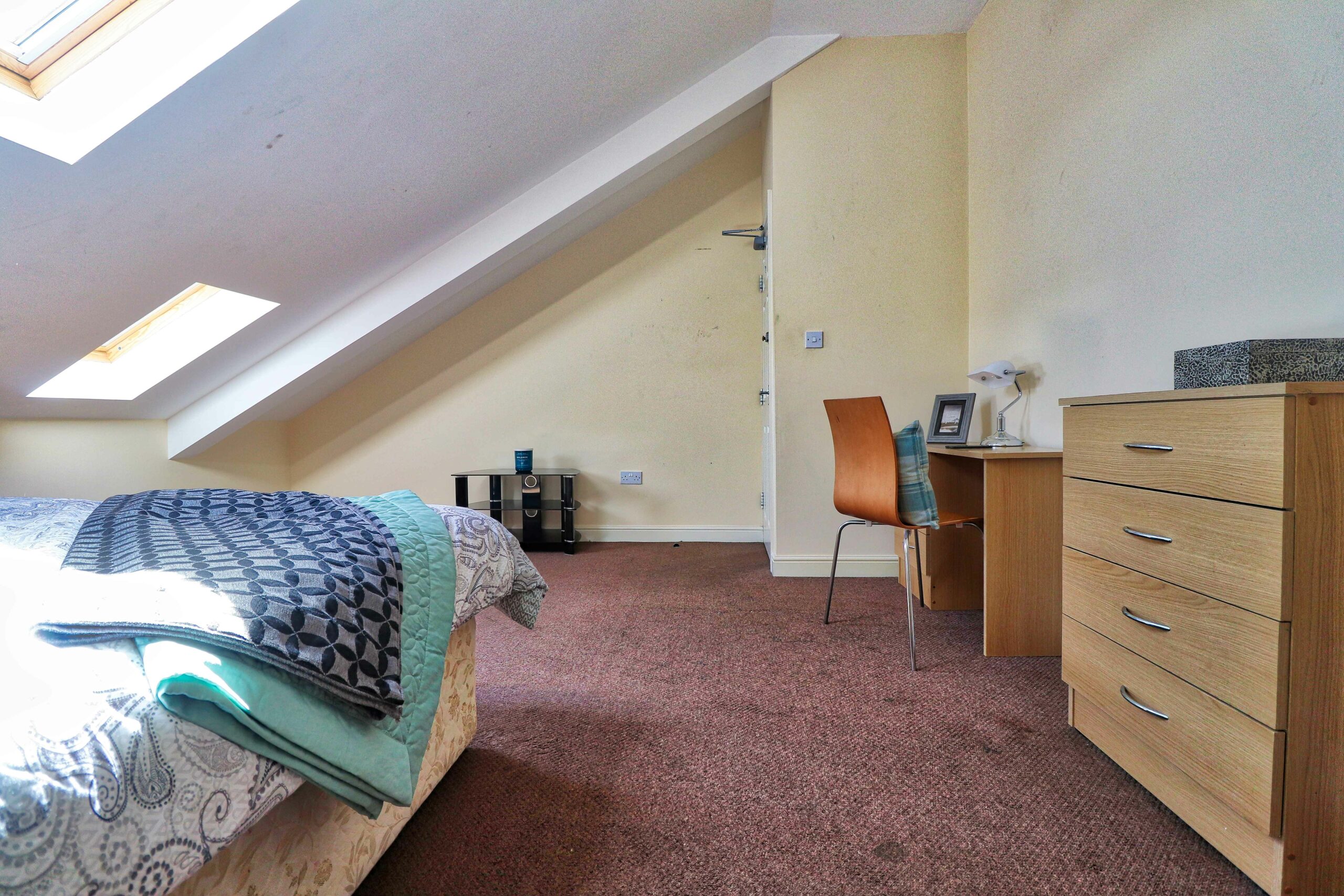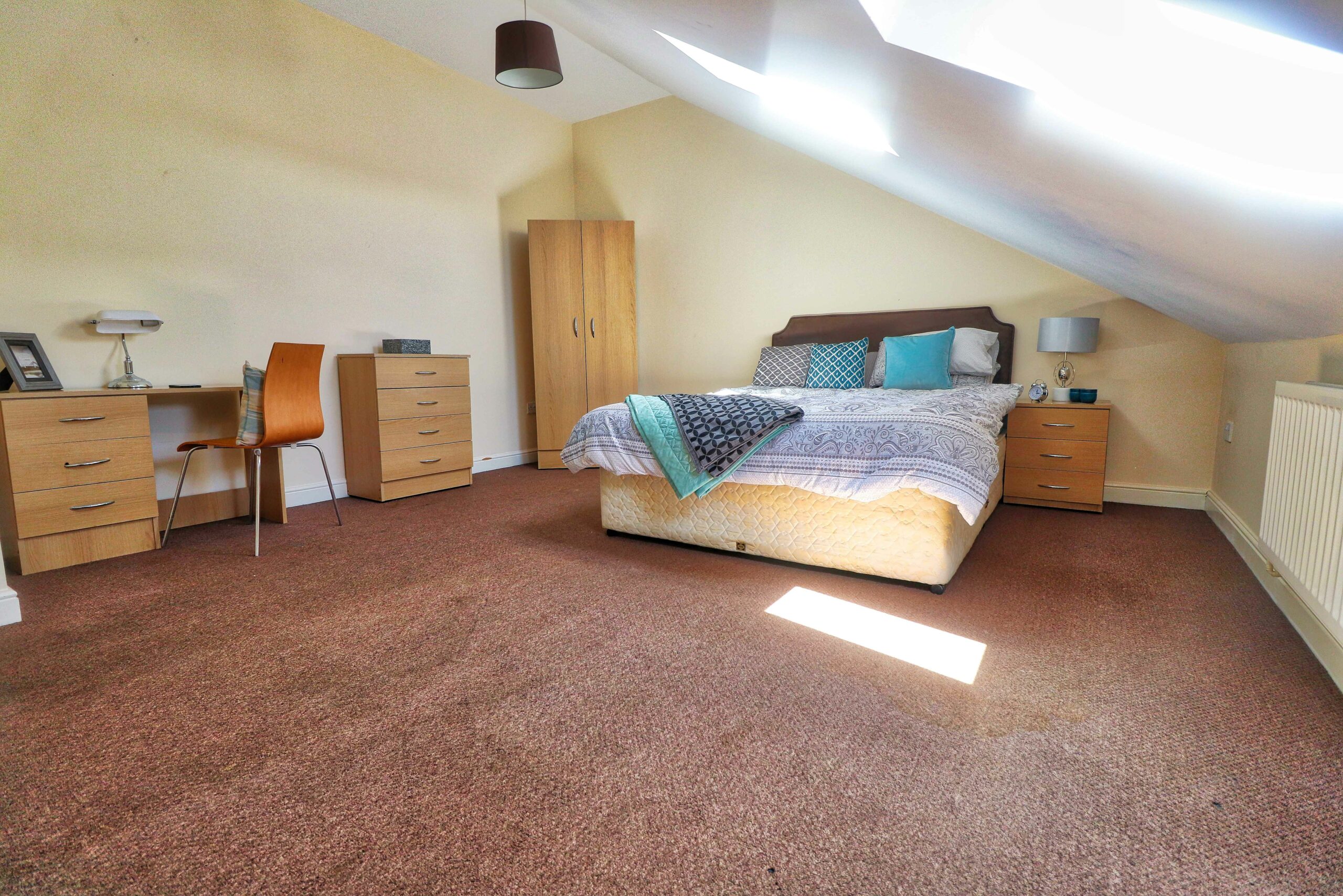 A large, light and airy room situated on the 2nd floor with a velux window overlooking the rear of the property. It is suitable for either double or single occupancy and contains a desk, chair, a fitted wardrobe, chest of drawers, bed side table and a double bed.  The room also has a tv aerial point.