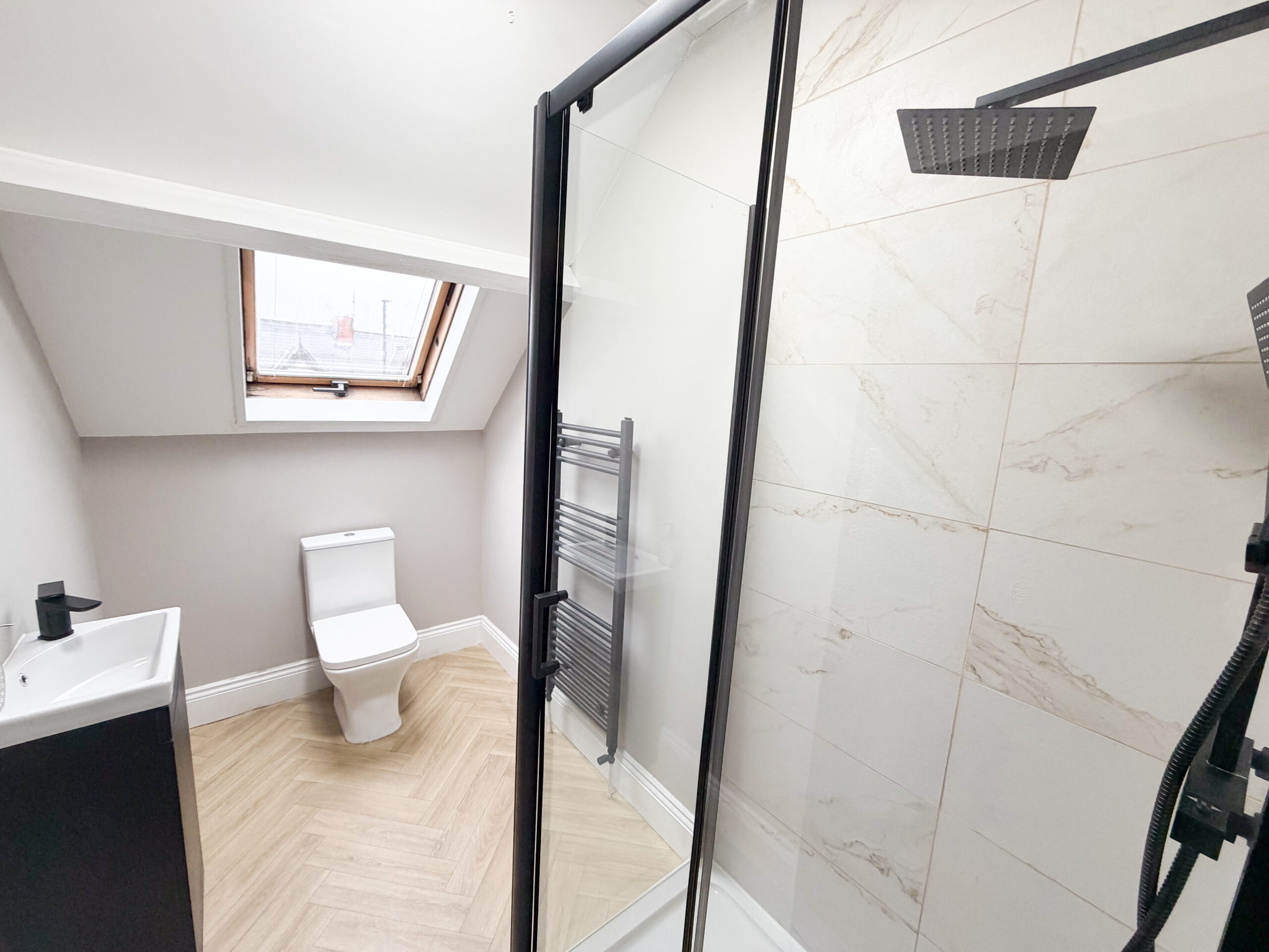 Across the upper floors, the property has been fully reconfigured and upgraded to provide private bathroom facilities for every bedroom. All bathrooms are finished with modern tiling, contemporary sanitary ware, and rainfall shower heads.