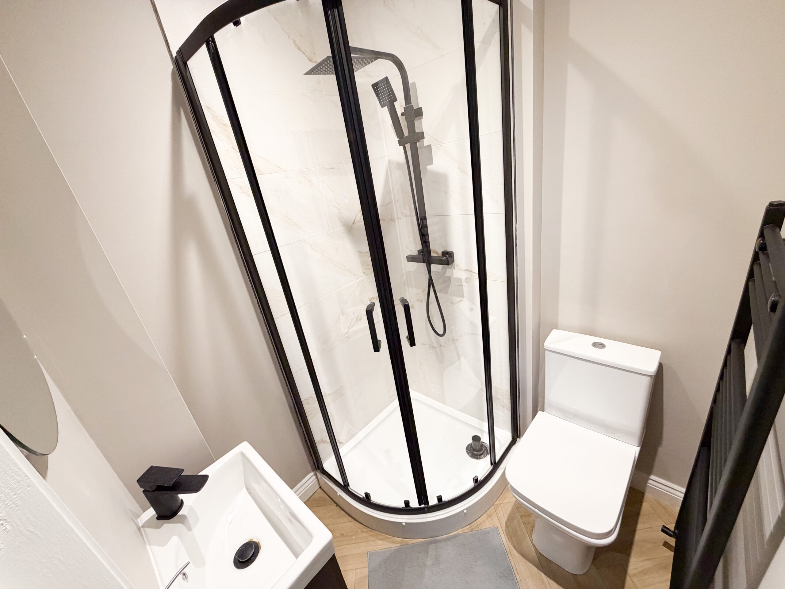 Across the upper floors, the property has been fully reconfigured and upgraded to provide private bathroom facilities for every bedroom. All bathrooms are finished with modern tiling, contemporary sanitary ware, and rainfall shower heads.
