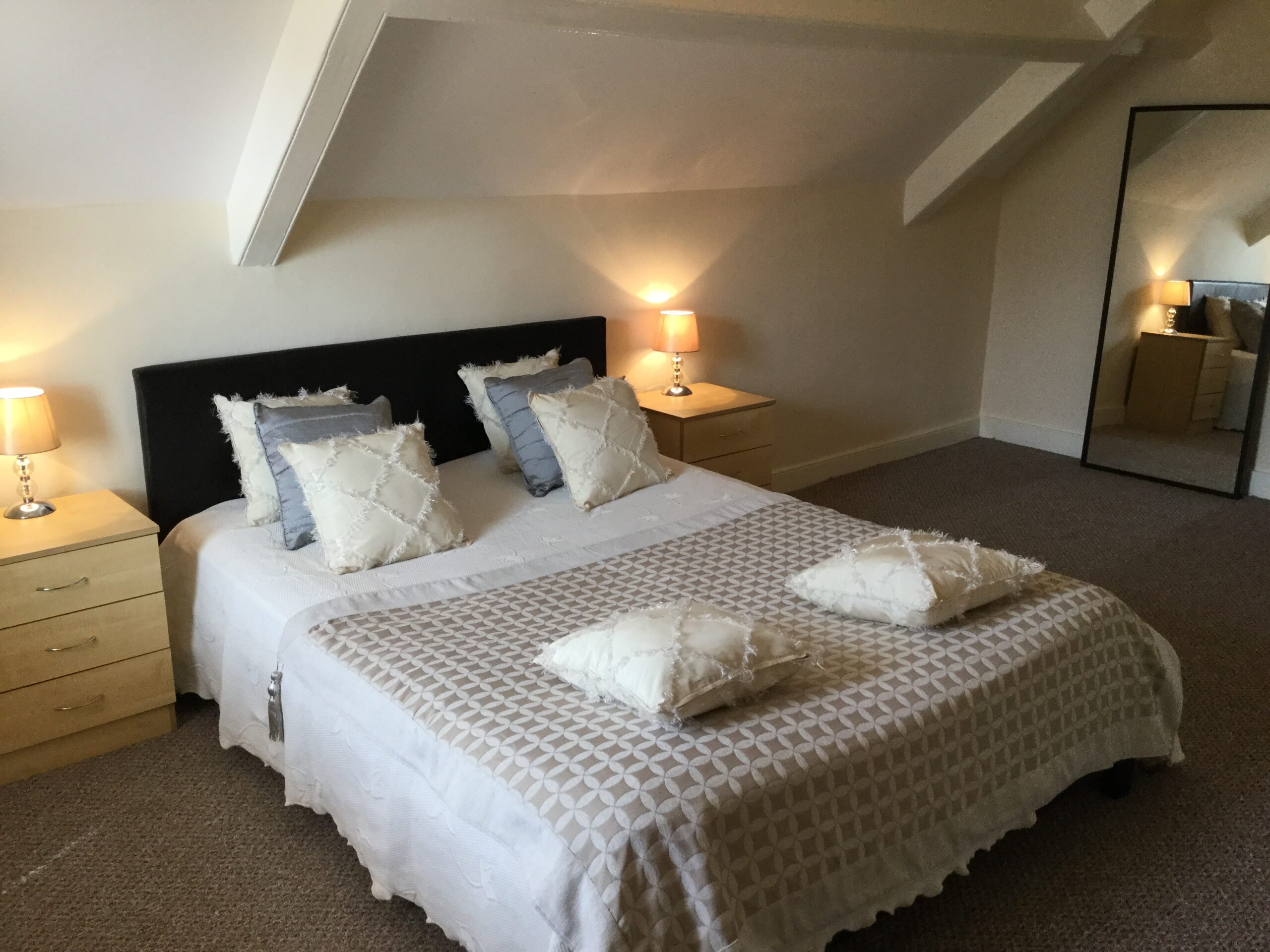 At either side of the living room there are bedrooms, the good sized double room and the other is a larger double room. Both rooms are neutrally decorated and carpeted, and both are adequately furnished.