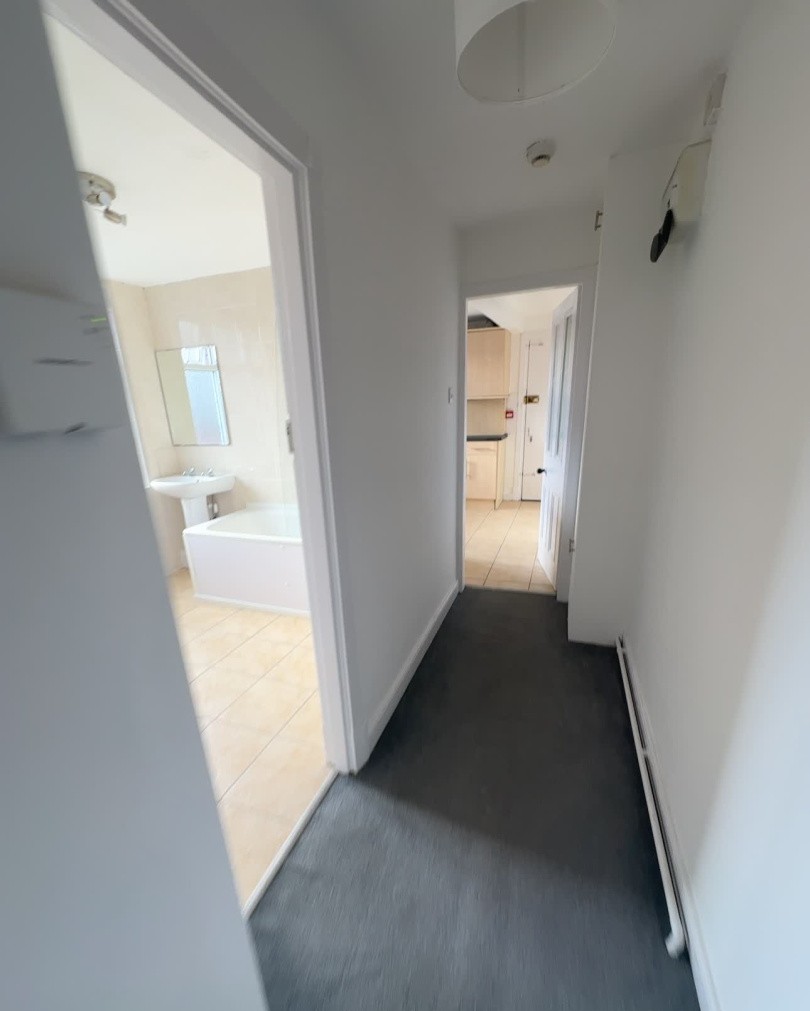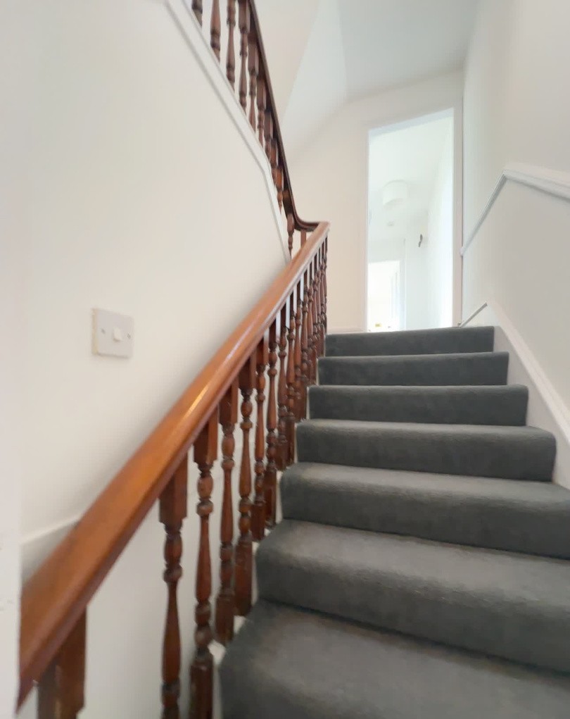 You enter the property through a communal porch which then leads to a set of stairs. At the top of the stairs you will find your front door. From the front door there is a further set of stairs and spacious stairwell and hallway.