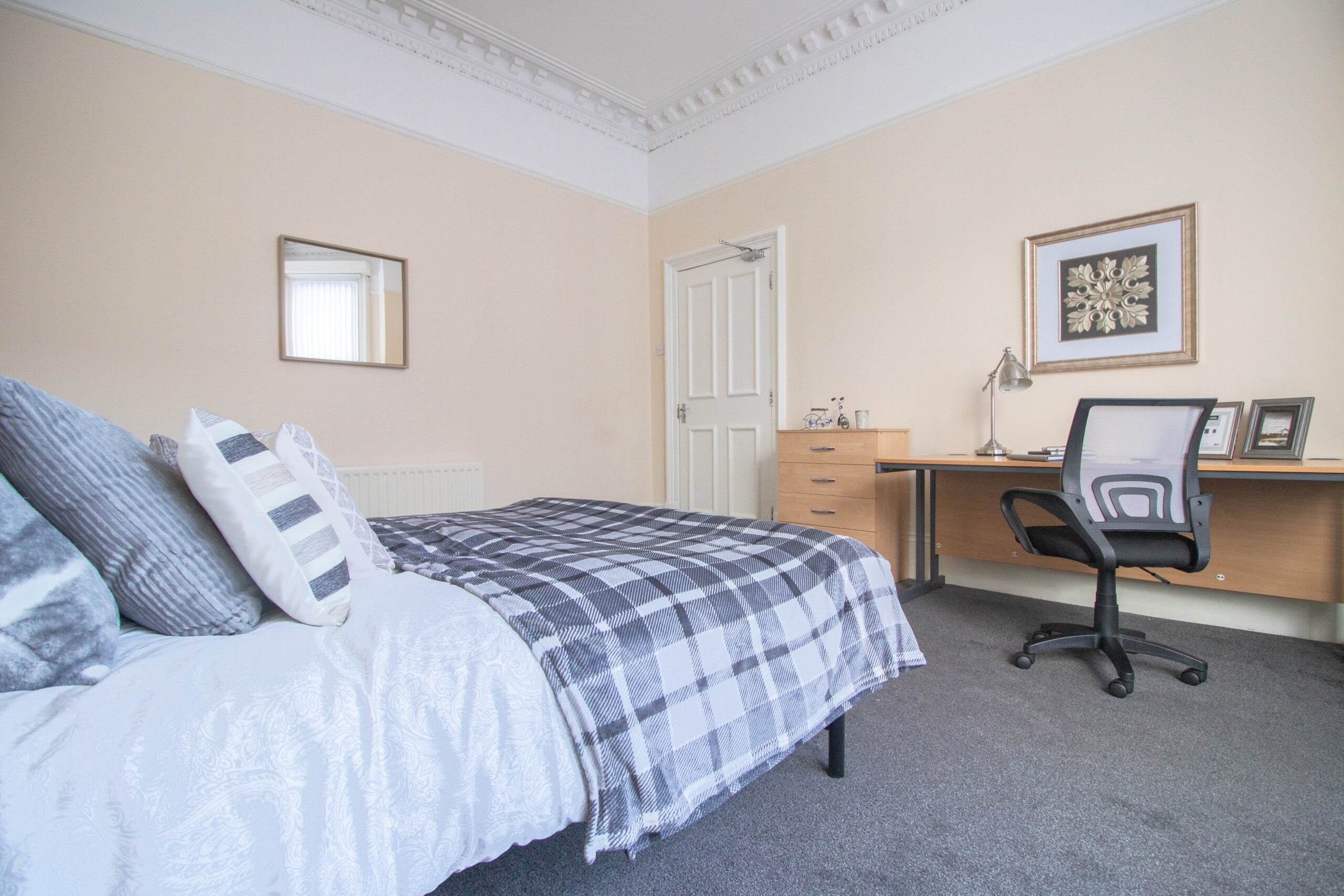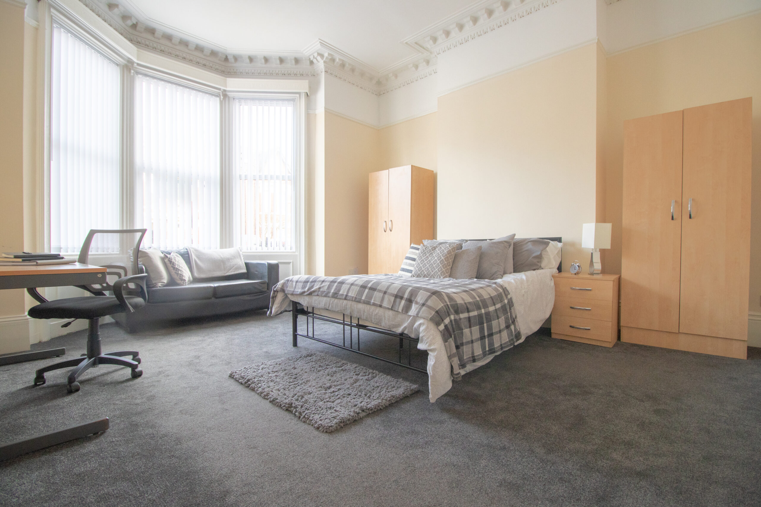 This is a very large, light and airy room situated on the ground floor with a large bay window looking out over the front of the property. It is suitable for either double or single occupancy and comes fully furnished.