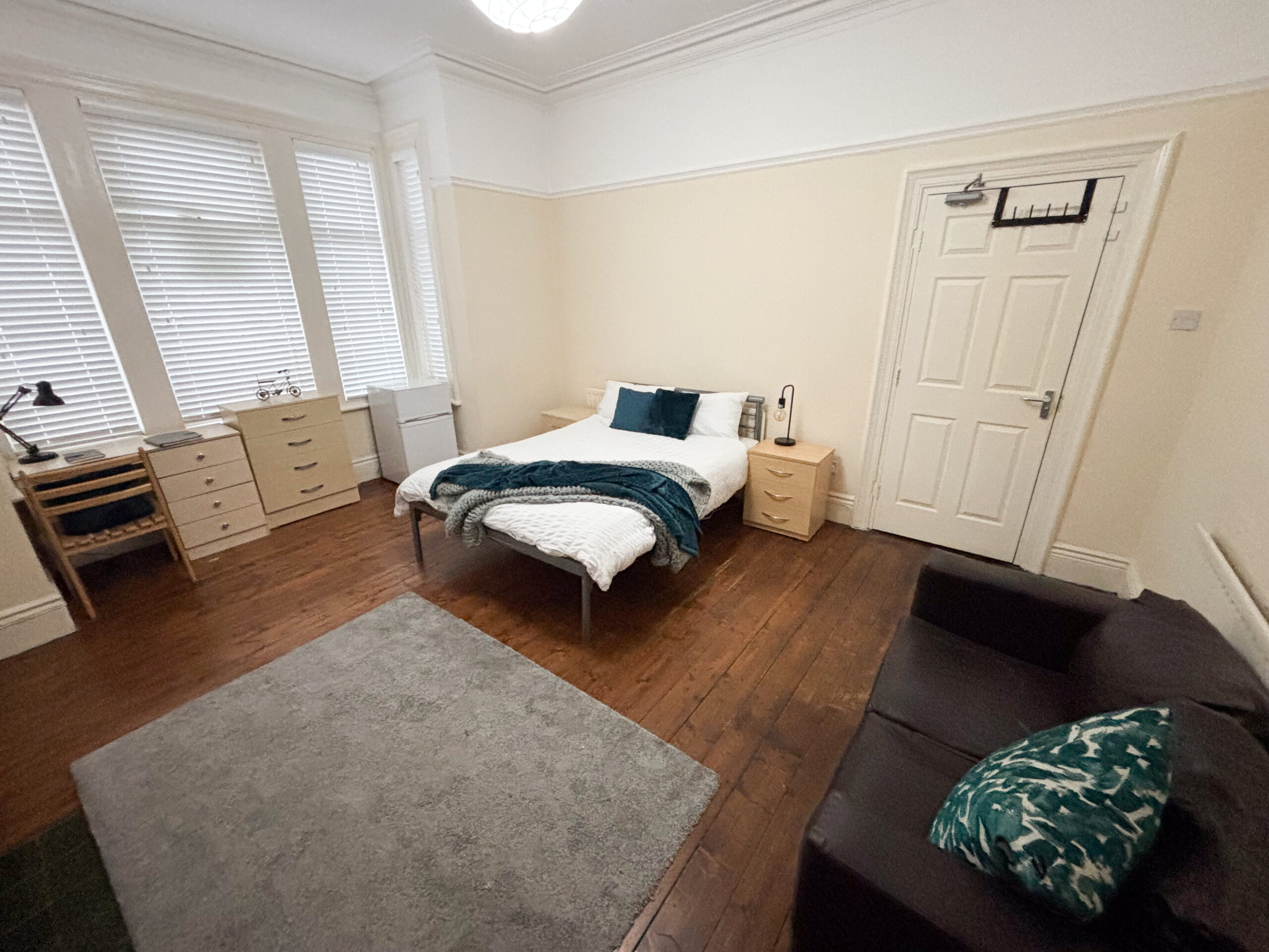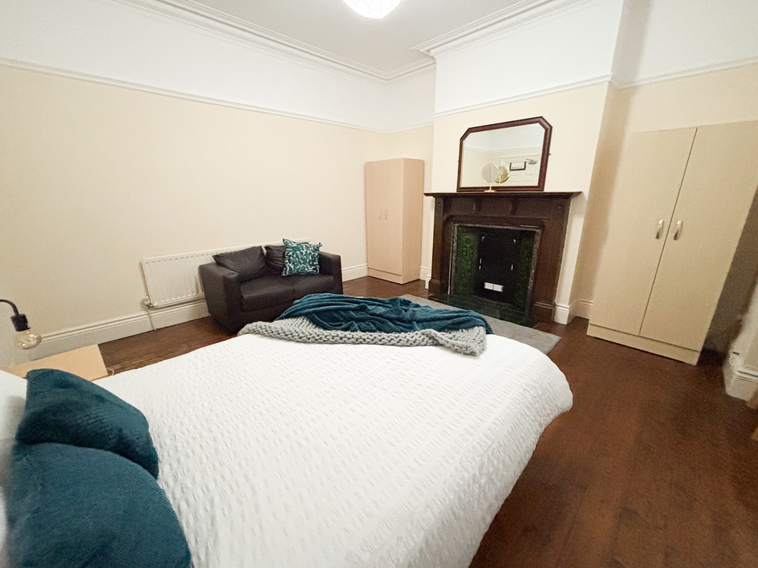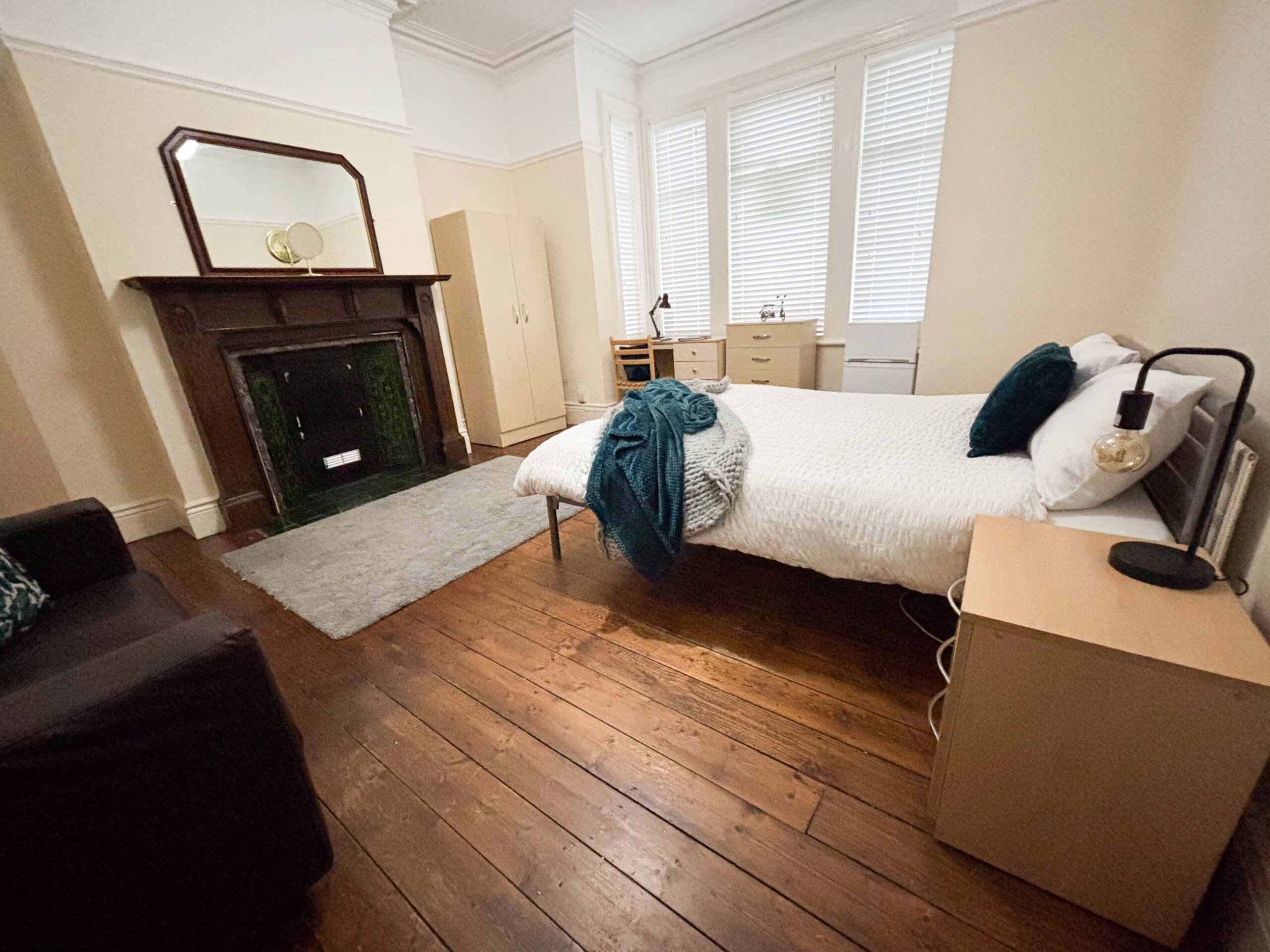 This is a bright and spacious, large double room on the ground floor with a bay window to the front of the property. The room comes fully furnished.