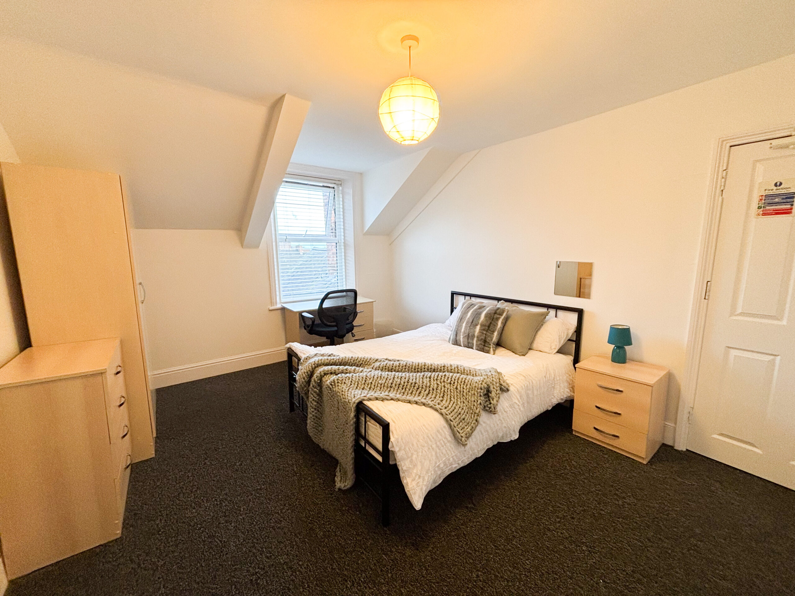 This is a large charmingly proportioned room with a walk in dormer window overlooking the rear of the property and is situated in the eaves of the property on the 2nd floor. The room comes carpeted and fully furnished.