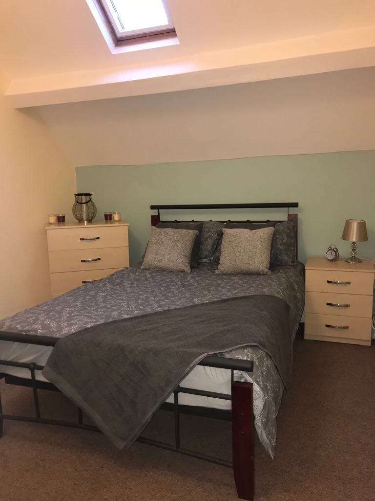 This is a double room situated at the front of the house and overlooking the front of the property. The room is on the 2nd floor of the property and comes fully furnished. It has a velux roof window and blackout blind.