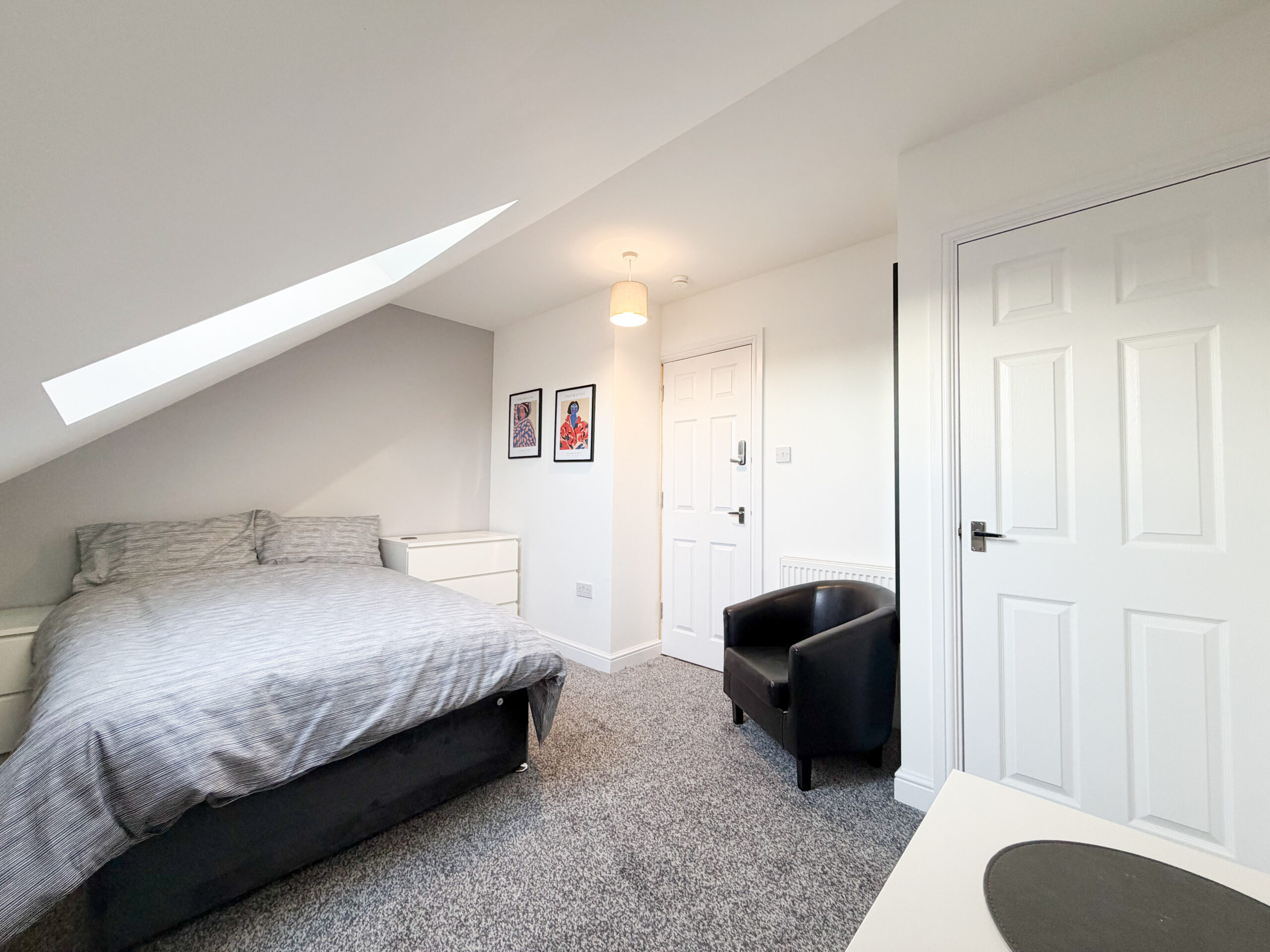 This is a large ensuite room situated at the front of the property. The room is well presented, fully furnished, and benefits from a private, very modern ensuite shower room, creating a stylish and comfortable living space.